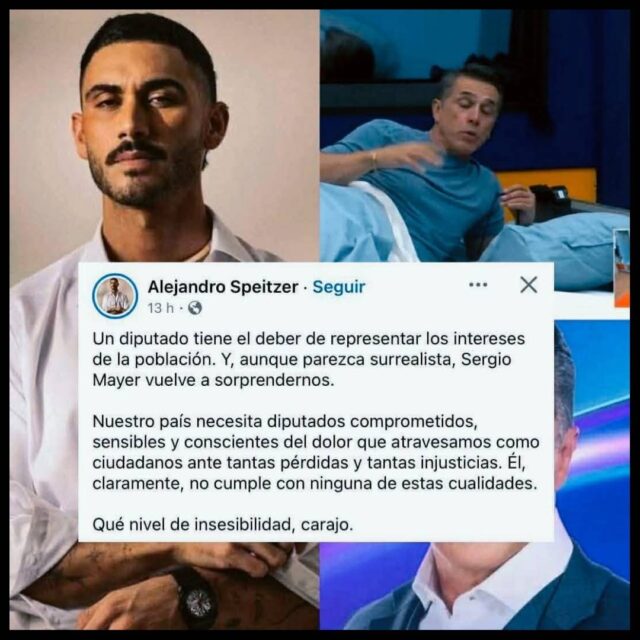 Speitzer expresó su postura ante la decisión de Mayer de tomar un “descanso” de su cargo como diputado para ingresar a un programa de entretenimiento, generando una ola de reacciones en redes sociales. Para muchos, sus palabras representaron el sentir de la gente: la línea entre el espectáculo y la responsabilidad pública parece cada vez más difusa.