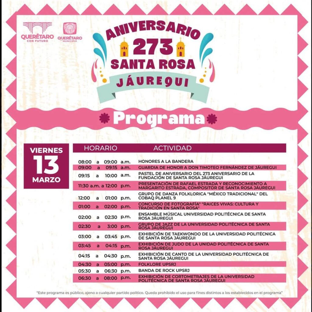 Especificó que 13 de marzo habrá un evento cívico donde se reconocerá a los fundadores de Santa Rosa; el 14 y 15 tendrá lugar la feria.