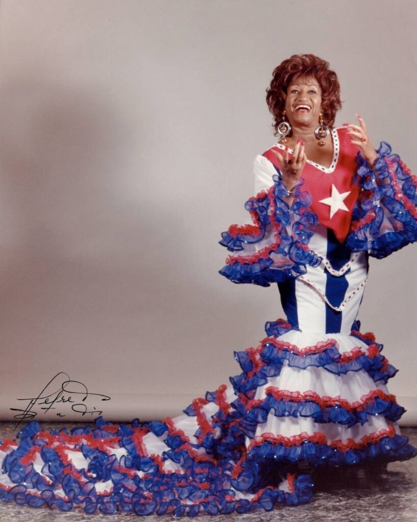 A esto sumale su forma de vestir, sus pelucas, sus vestidos y sus, zapatos, la cónica frase “Azúcar”, su elegancia, su buen carácter alegre y amable, asi como la potencia en su voz.