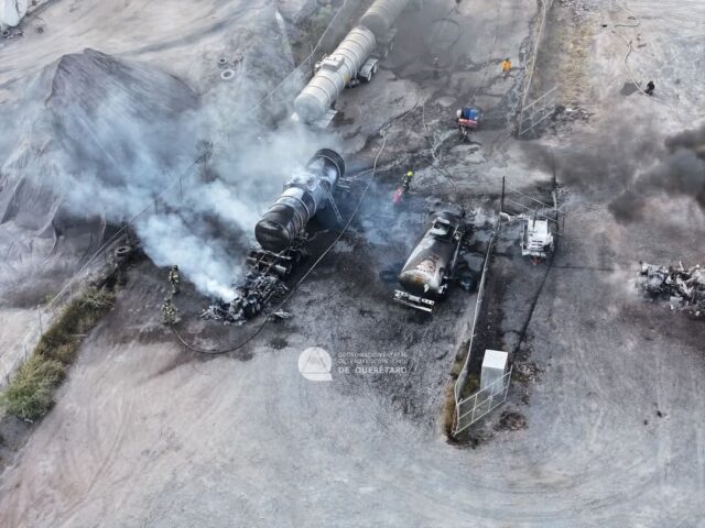 El Marqués, Querétaro a domingo 25 de octubre del 2025 / Una explosión de una pipa con hidrocarburo se registró en la comunidad de La Quebradora en el municipio de El Márques, generando un fuego intenso en la zona y una enorme fumarola que se percibió en diferentes partes de la zona metropolitana.