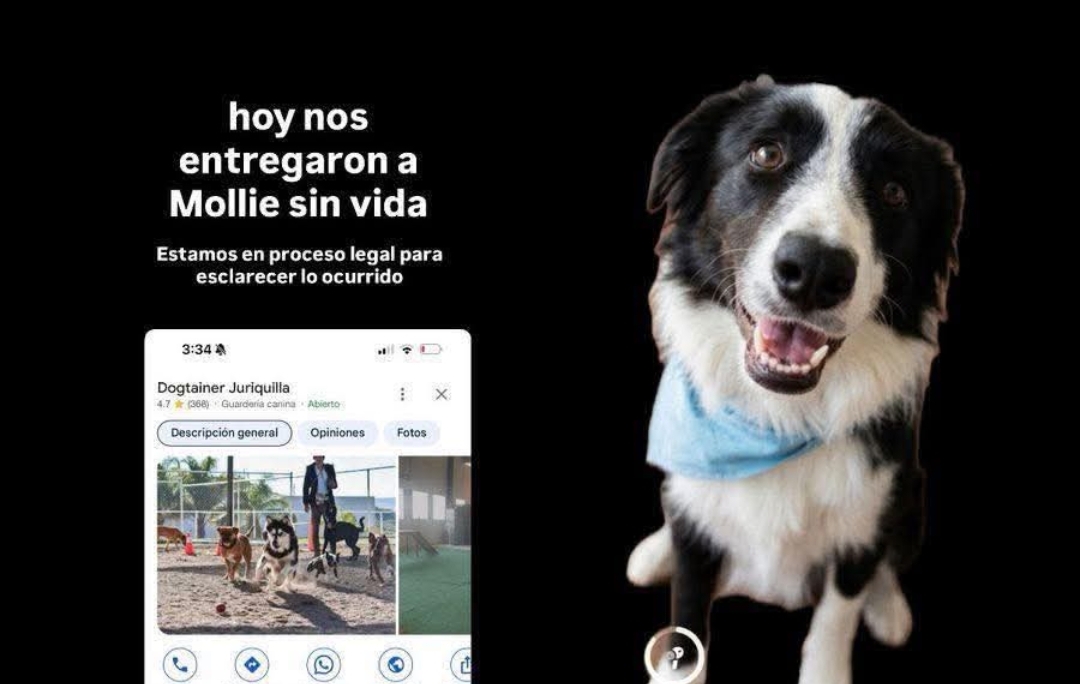 Querétaro a 08 de abril del 2026 º De acuerdo con la familia de la perrita Mollie, fue dejada bajo resguardo en el establecimiento Dogtainer ubicado en Juriquilla y al día siguiente fue entregada sin vida y sin una explicación clara, por lo que anunciaron que presentarán una denuncia ante la Fiscalía.