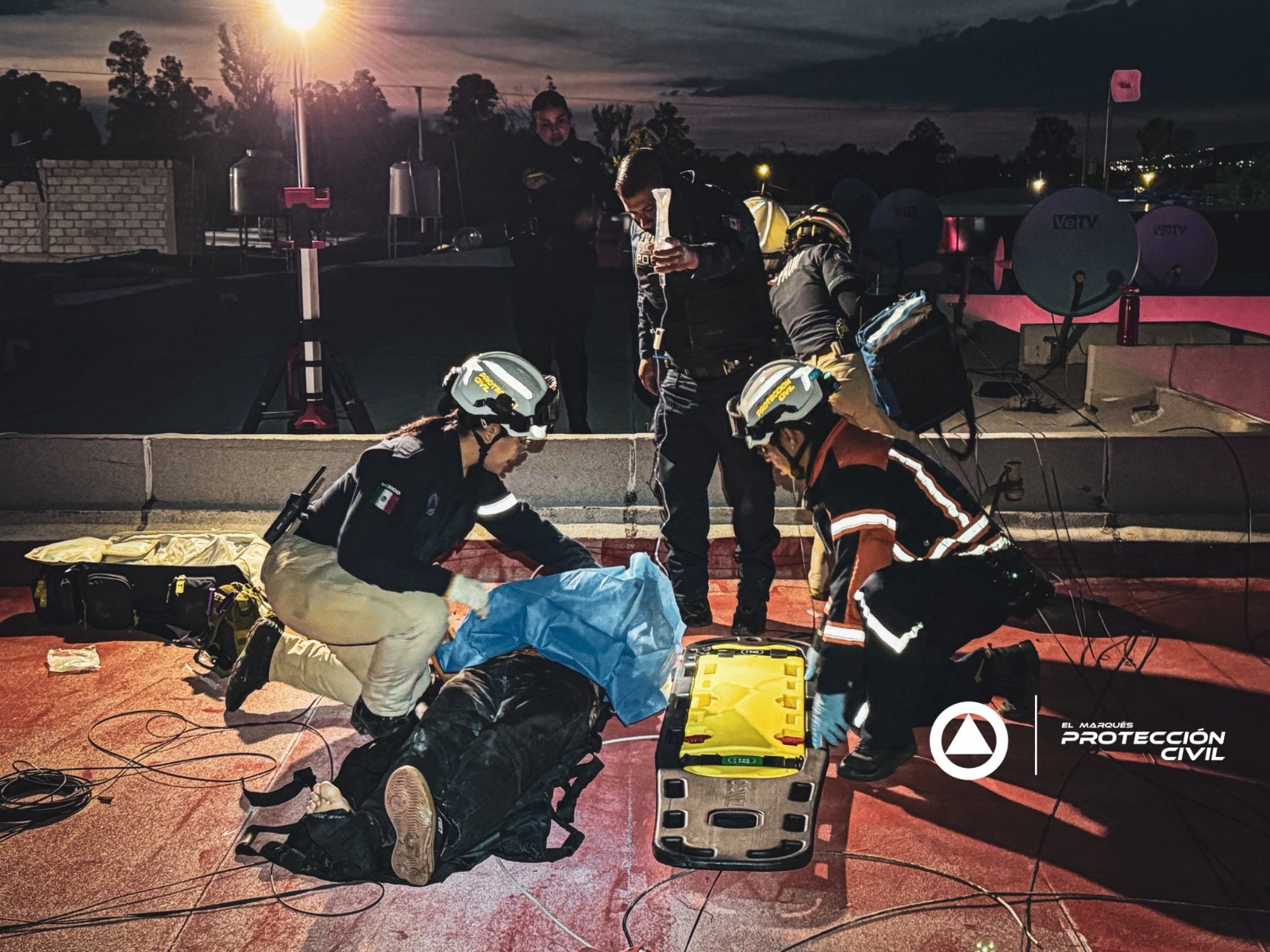 Se atendieron a tres personas involucradas: dos con lesiones leves y una con quemaduras de gravedad. El paciente se encontraba en la azotea, por lo que la sección de Rescate de Protección Civil del municipio de El Marques, implementó un sistema de cuerdas para realizar su descenso de manera segura, para ser trasladado a un hospital.