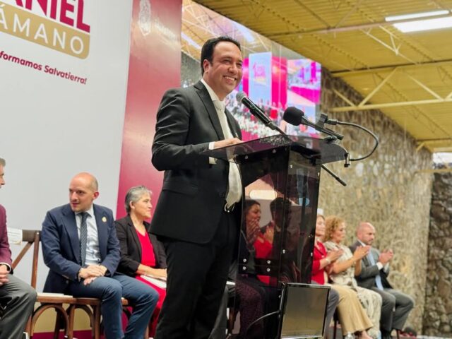 Guanajuato. Viernes 19 de septiembre del 2025. El presidente municipal de Salvatierra, Guanajuato, José Daniel Samano Jiménez, hizo entrega de su primer informe de actividades al frente de este municipio en un evento público, donde fue entregado a representantes de distintos poderes federales, locales y sociales, con el fin de dar a conocer los resultados de su gestión.