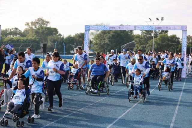Participaron un total de 350 parejas, una persona convencional y una persona con discapacidad, integradas por familiares, atletas de alto rendimiento y público en general en la distancia de 1.5 kilómetros.