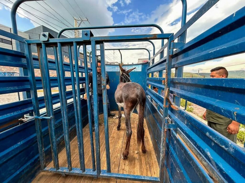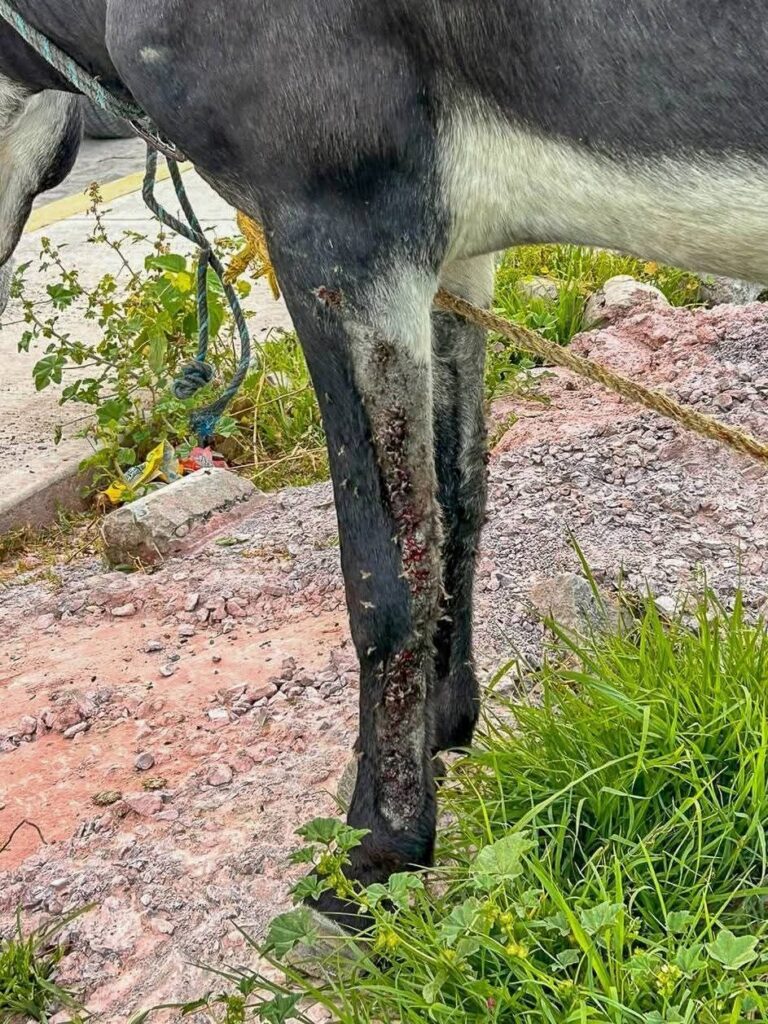 Querétaro. Martes 22 de agosto del 2025. En atención a un reporte ciudadano, personal de Protección Animal acudió a la comunidad de Tierra Blanca, donde localizaron a un burrito con visibles lesiones y sin supervisión, deambulando en la vía pública.