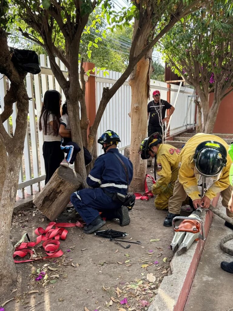 De acuerdo con los primeros reportes, la niña se encontraba en horario escolar cuando, al realizar actividades recreativas, quedó atorada entre las ramas del árbol, lo que generó la movilización de personal docente y cuerpos de emergencia.