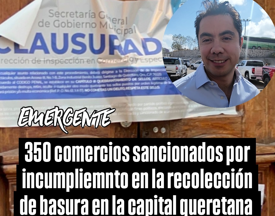 El alcalde de Querétaro, Felipe Macías Olvera señalo que se han sancionado 350 comercios por el incumplimiento de recolección de basura y disposición de residuos en la capital queretana.