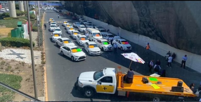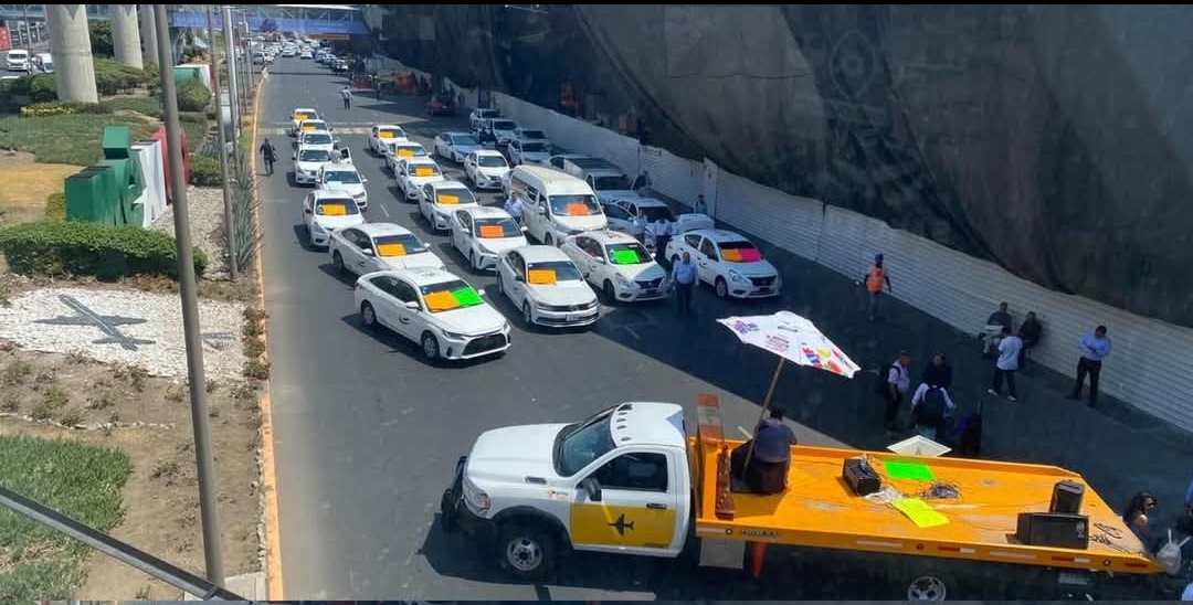 Taxistas se manifiestan contra Uber y Didi en el aeropuerto de la CDMX